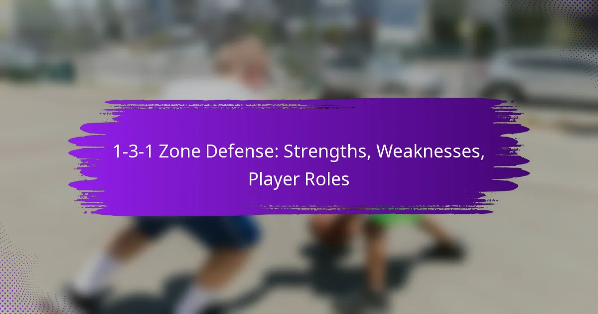 The 1-3-1 zone defense features distinct roles for each player, focusing on teamwork and communication to effectively guard against opposing offenses. Each player has specific responsibilities that contribute to the overall strategy, making it essential to understand these roles for successful implementation.