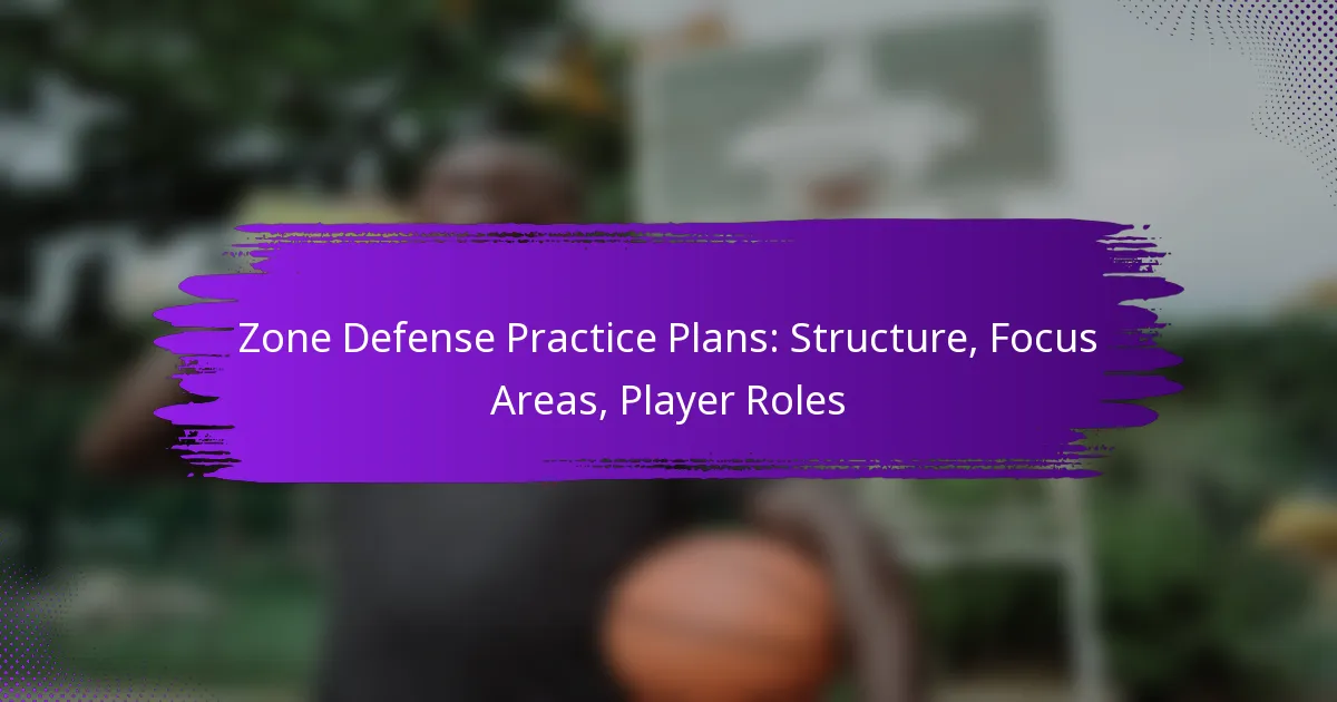 Zone defense is a strategic approach in basketball where players guard designated areas of the court instead of individual opponents, promoting teamwork and spatial awareness. A well-structured practice plan for zone defense is essential, incorporating specific drills that highlight player roles and responsibilities while emphasizing key focus areas such as communication, positioning, and rotations. By prioritizing these elements, teams can enhance their defensive cohesion and effectiveness during games.